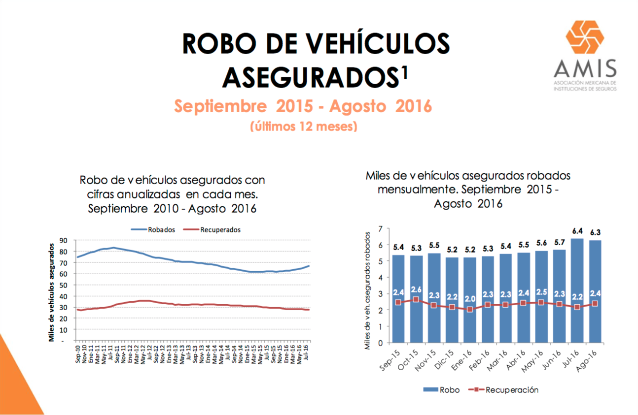 Robo de vehículos asegurados con cifras anualizadas en cada mes.